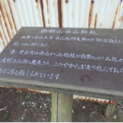 御殿山の山頂にまつられている白山神社は、遠い昔、加賀(今の石川県)白山から美しいお姫様が雲に乗り、二匹の蛇をお伴につれてこられ、きれいなやかたを造り住んでおられた処と伝えられています。